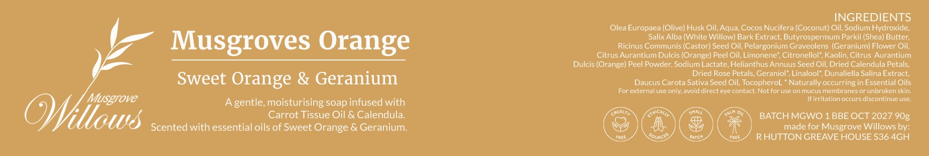 Musgrove’s Orange Soap — Sweet Orange, Geranium & Willow (90g)