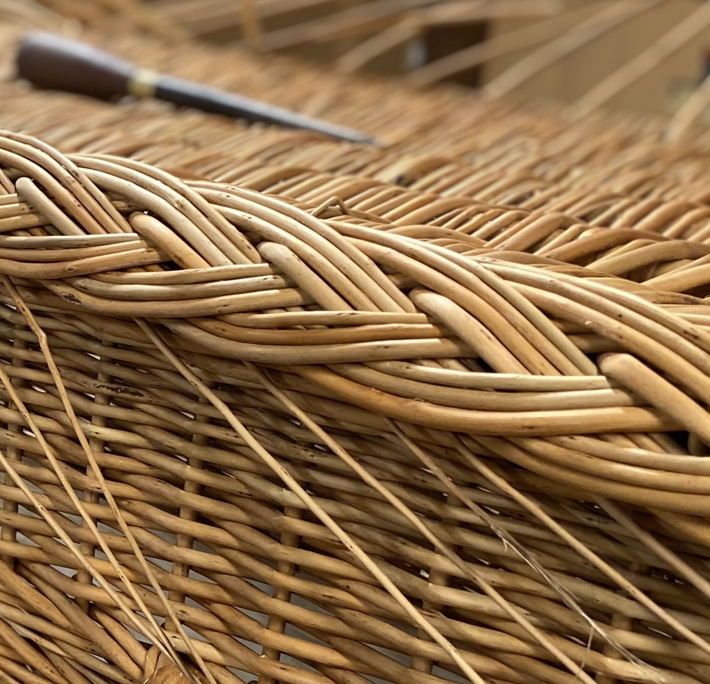 You will be working from a bordering board to produce samples and to gain confidence and competence in this complex border. There may be an opportunity to work with bark-on and bark-off willows to gain a feel/understanding of the differences between the two.