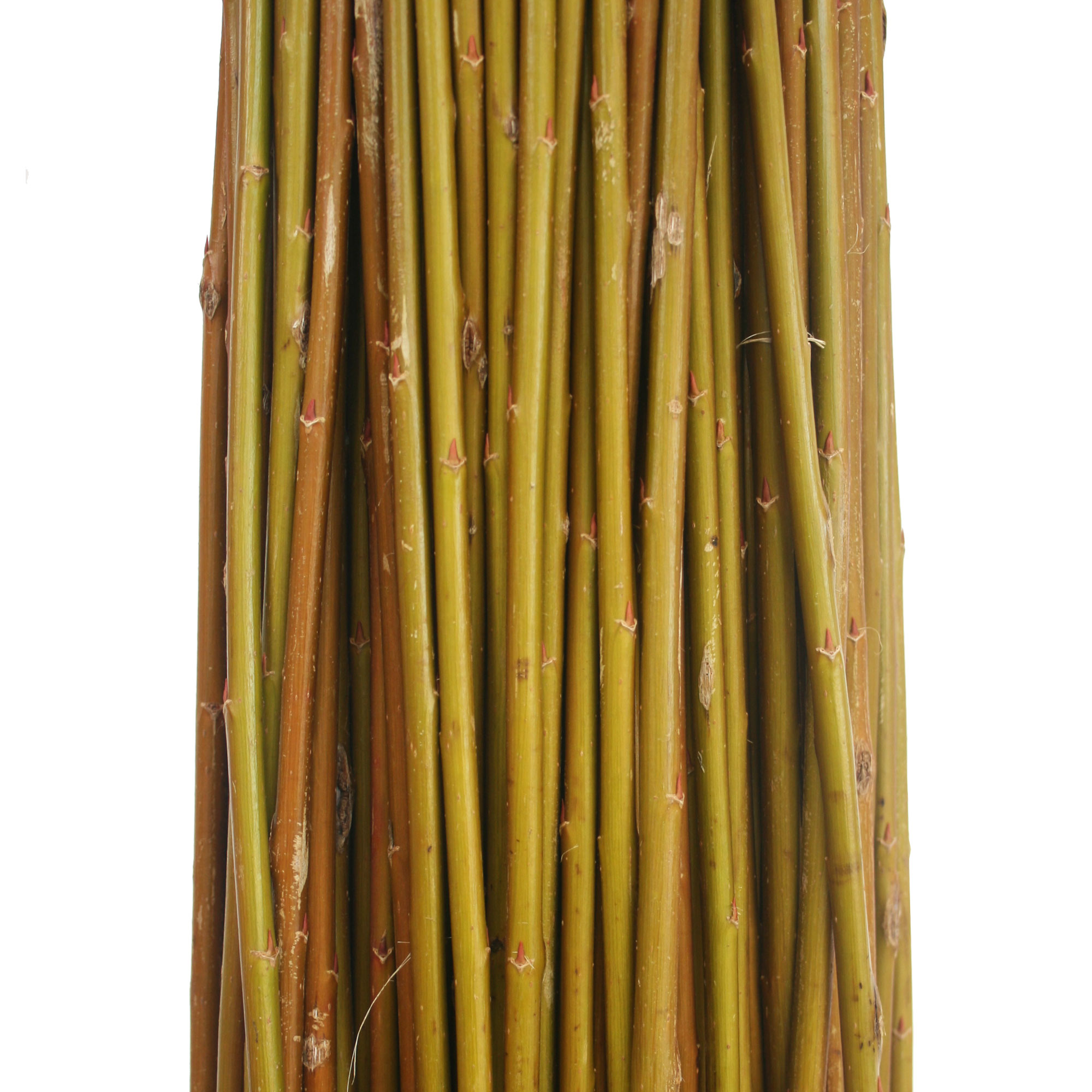 Willow is sold by weight and while most of our varieties are available in 1/2 and whole bundles, these are sold in 10kg bundles. A green willow rod weighs more than the same length of brown, white or buff. Therefore, a bundle of green willow contains less rods than the equivalent weight of brown, white or buff.